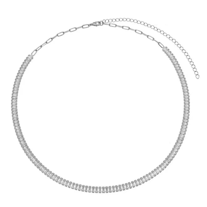 Elevate your tennis game with our ADA Tennis Necklace in Rhodium. Featuring a dazzling 4mm crystal baguette riviera chain, this necklace adds a touch of sparkle and elegance to any outfit. Measuring 40cm in total length with a 10cm extender, it can be adjusted to fit your desired length.