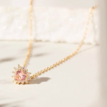 EMBROIDERED HEART NECKLACE RHODOLITE CRYSTAL 50 CM 18K GOLD FILLED